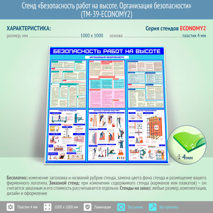 Стенд «Безопасность работ на высоте. Организация безопасности» (TM-39-ECONOMY2) в Альметьевске купить