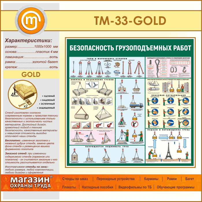Стенд «Безопасность грузоподъемных работ» (TM-33-GOLD) в Альметьевске купить