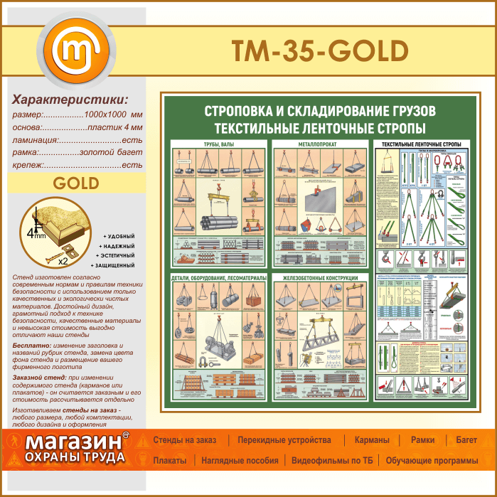 Стенд «Строповка и складирование грузов. Текстильные ленточные стропы» (TM-35-GOLD) в Альметьевске купить