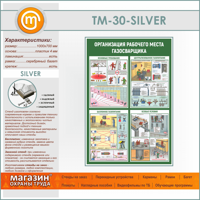 Стенд «Организация рабочего места газосварщика» (TM-30-SILVER) в Альметьевске купить