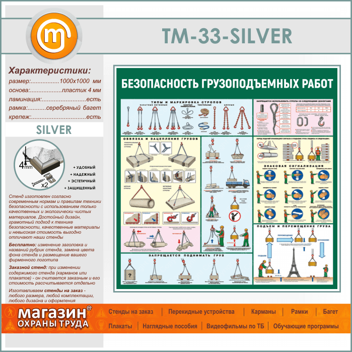 Стенд «Безопасность грузоподъемных работ» (TM-33-SILVER) в Альметьевске купить