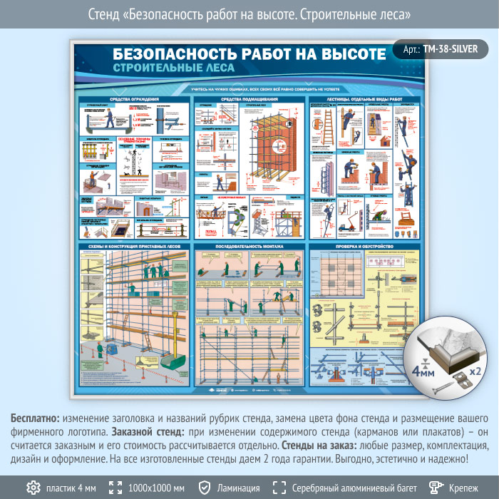 Стенд «Безопасность работ на высоте. Строительные леса» (TM-38-SILVER) в Альметьевске купить