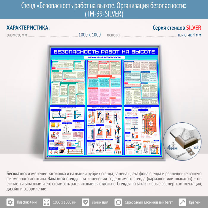 Стенд «Безопасность работ на высоте. Организация безопасности» (TM-39-SILVER) в Альметьевске купить