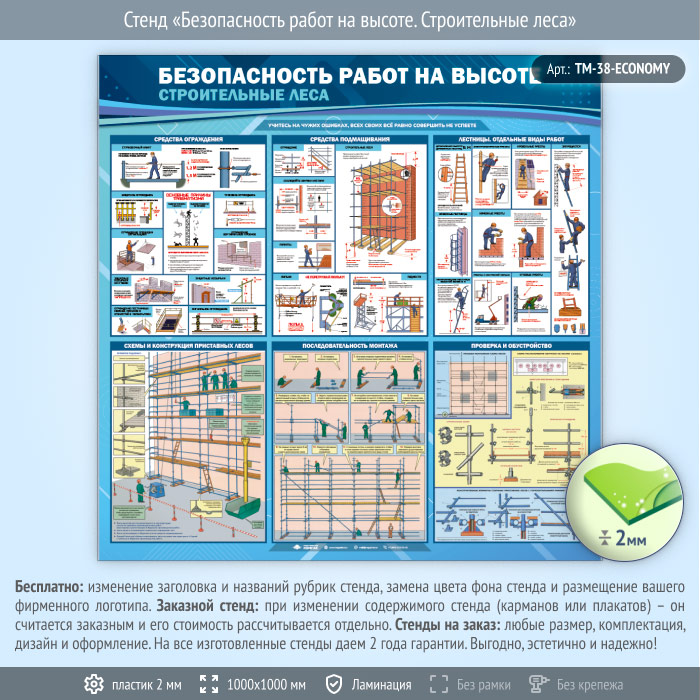 Стенд «Безопасность работ на высоте. Строительные леса» (TM-38-ECONOMY) в Альметьевске купить