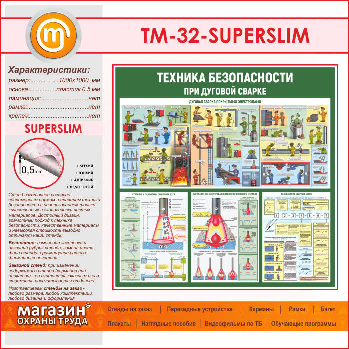 Стенд «Техника безопасности при дуговой сварке» (TM-32-SUPERSLIM) в Альметьевске купить