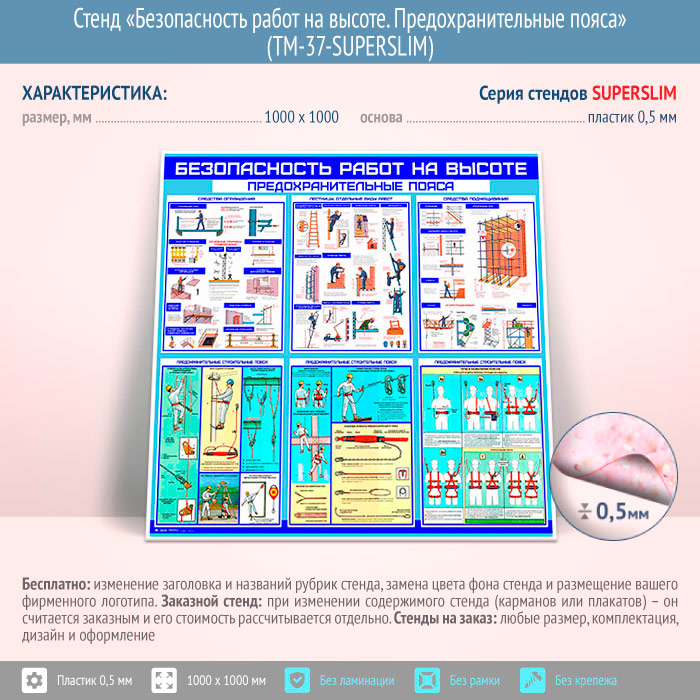 Стенд «Безопасность работ на высоте. Предохранительные пояса» (TM-37-SUPERSLIM) в Альметьевске купить