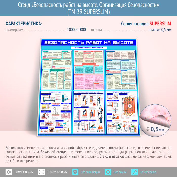 Стенд «Безопасность работ на высоте. Организация безопасности» (TM-39-SUPERSLIM) в Альметьевске купить