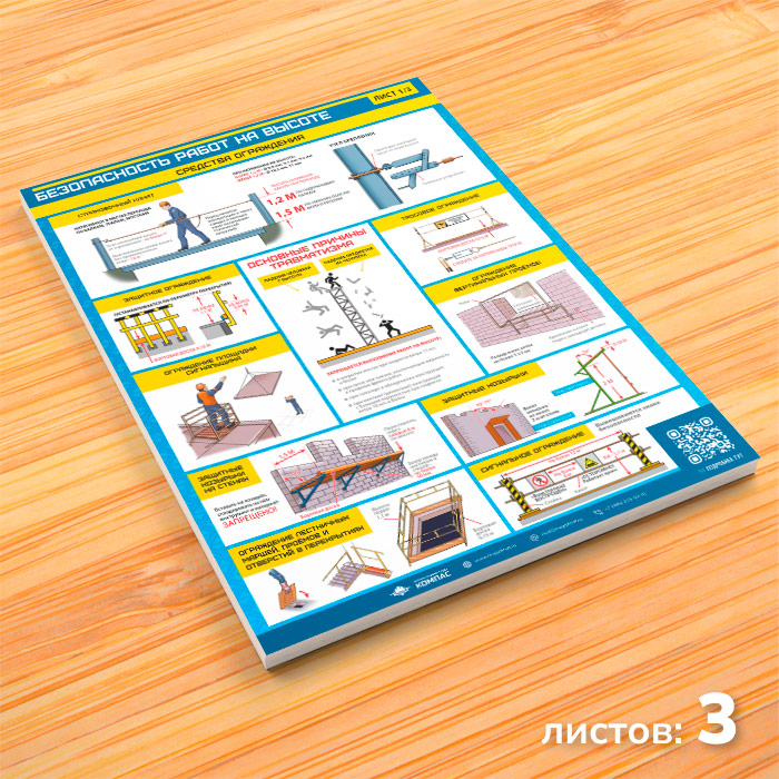 Плакаты «Безопасность работ на высоте» (М-52, ламинированная бумага, А2, 3 листа) в Альметьевске купить