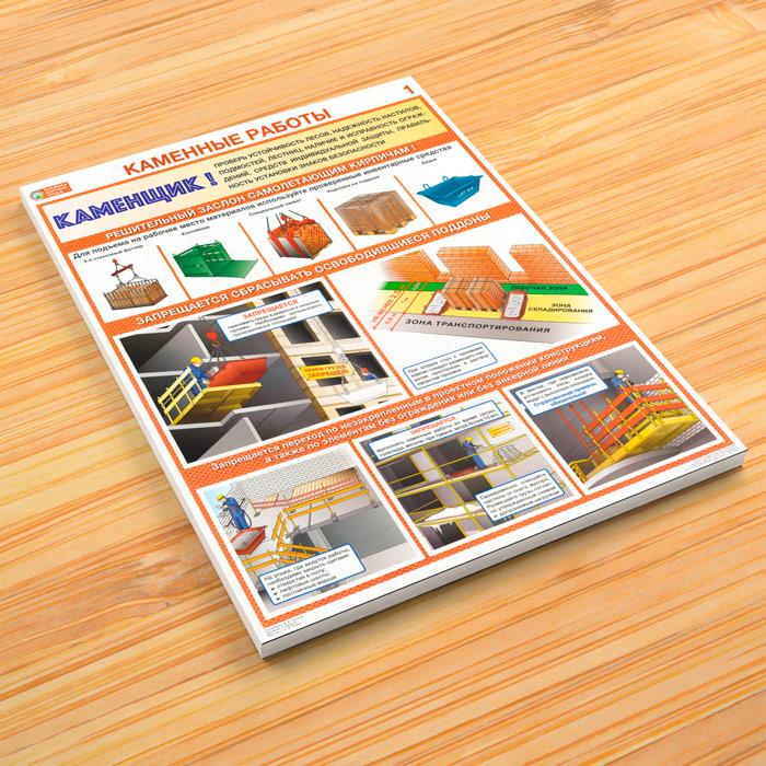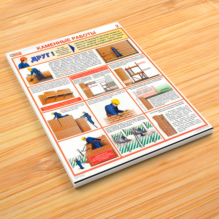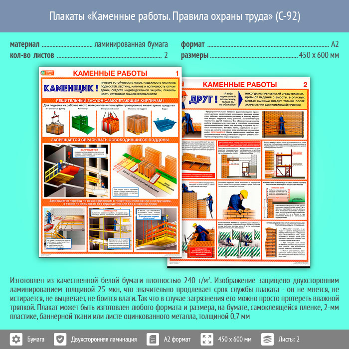 Плакаты «Каменные работы. Правила охраны труда» (С-92, ламинированная бумага, А2, 2 листа) в Альметьевске купить