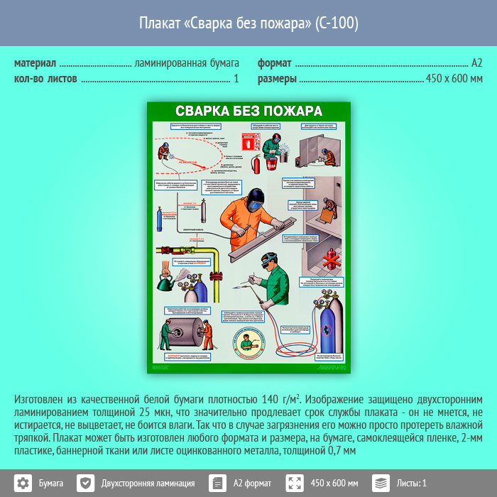 Плакат «Сварка без пожара» (С-100, ламинированная бумага, А2, 1 лист) в Альметьевске купить