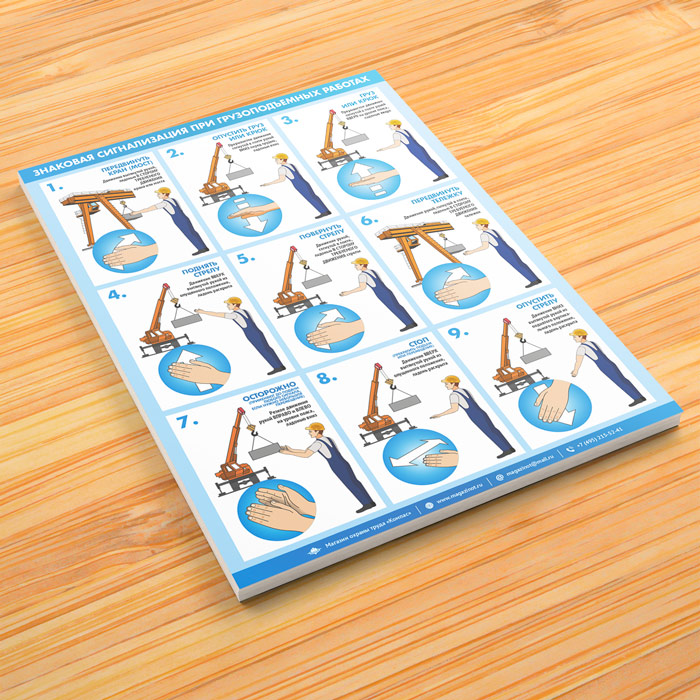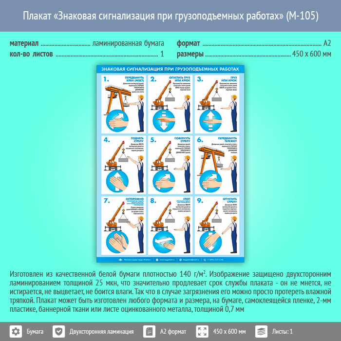 Плакат «Знаковая сигнализация при грузоподъемных работах» (М-105, ламинированная бумага, А2, 1 лист) в Альметьевске купить