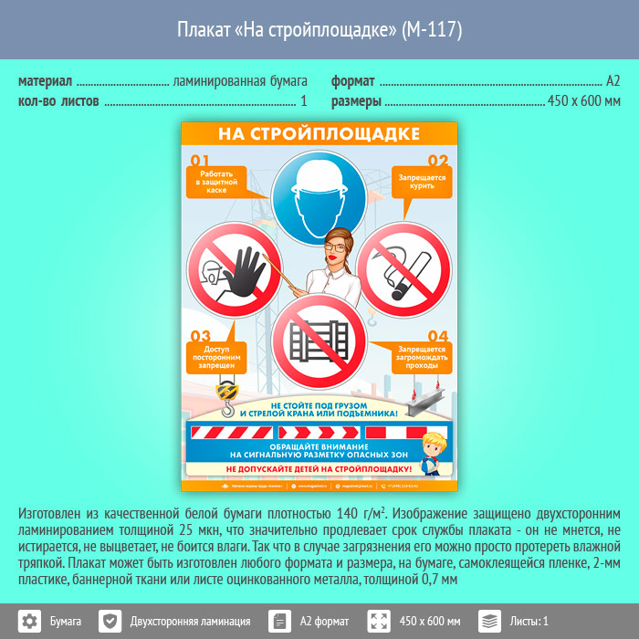 Плакат «На стройплощадке» (М-117, ламинированная бумага, А2, 1 лист) в Альметьевске купить