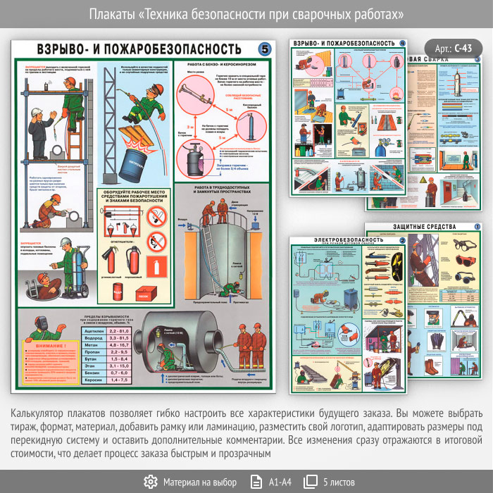 Плакаты «Техника безопасности при сварочных работах» (С-43, 5 листов) в Альметьевске купить
