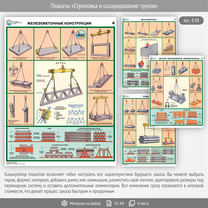 Плакаты «Строповка и складирование грузов» (С-51, 4 листа) в Альметьевске купить