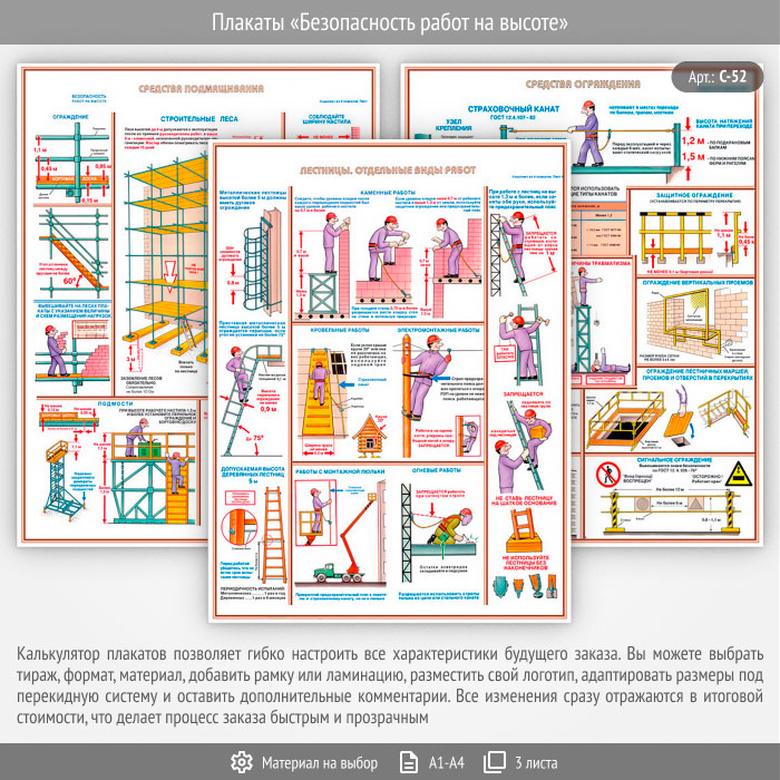 Плакаты «Безопасность работ на высоте» (С-52, 3 листа) в Альметьевске купить