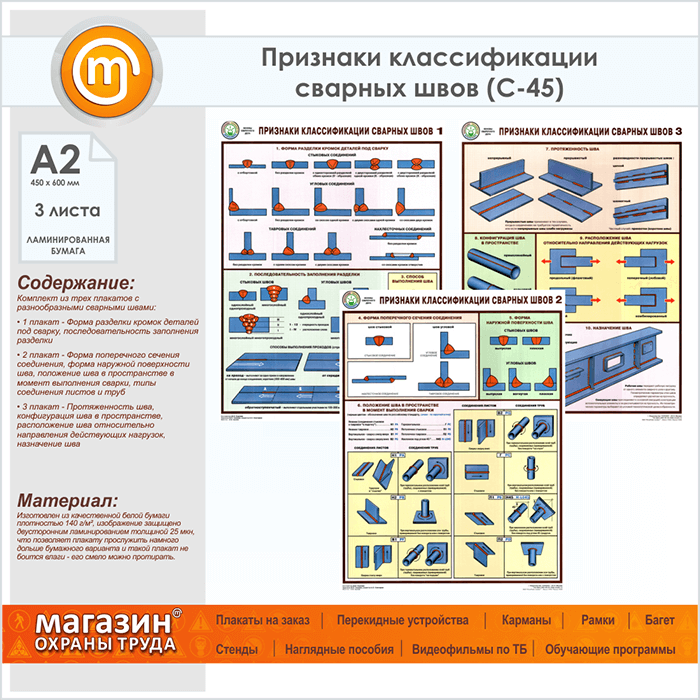 Плакаты «Признаки классификации сварных швов» (С-45, ламинированная бумага, А2, 3 листа) в Альметьевске купить