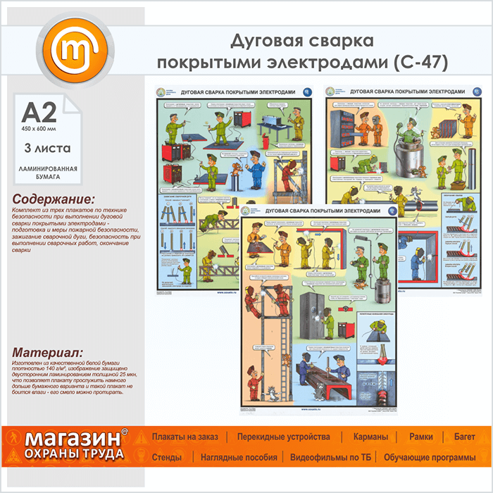 Плакаты «Дуговая сварка покрытыми электродами» (С-47, ламинированная бумага, А2, 3 листа) в Альметьевске купить