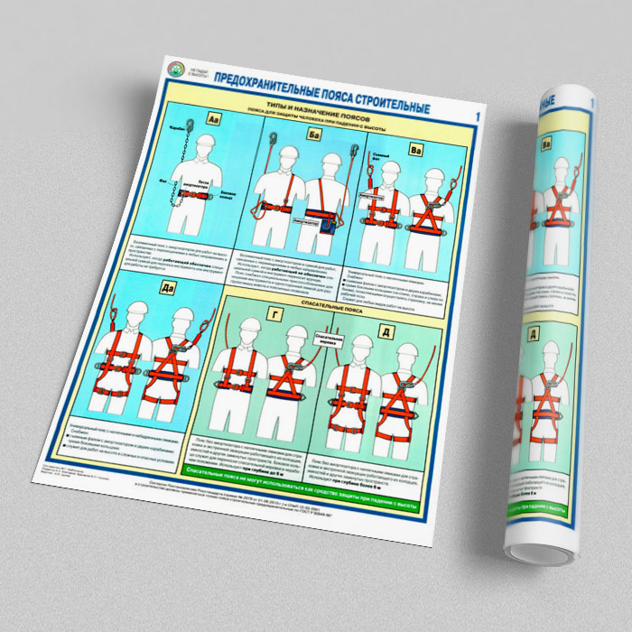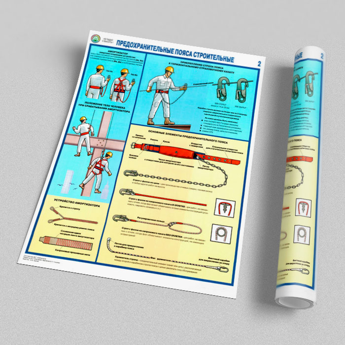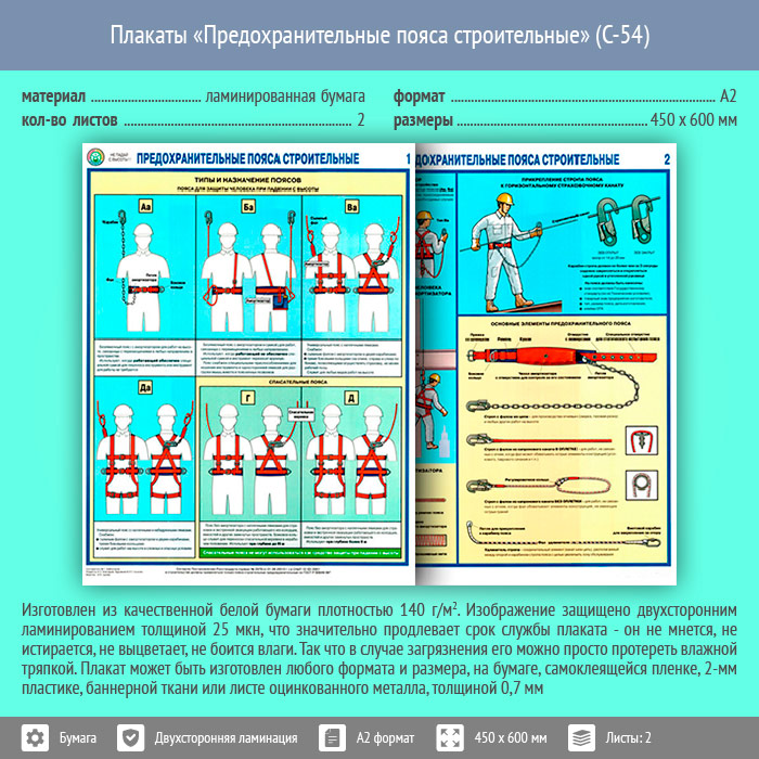 Плакаты «Предохранительные пояса строительные» (С-54, ламинированная бумага, А2, 2 листа) в Альметьевске купить