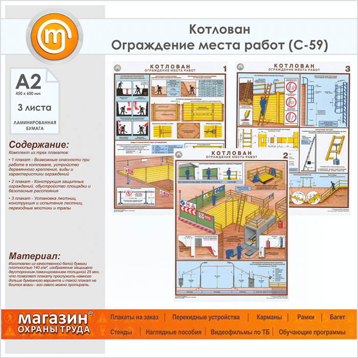 Плакаты «Котлован. Ограждение места работ» (С-59, ламинированная бумага, А2, 3 листа) в Альметьевске купить