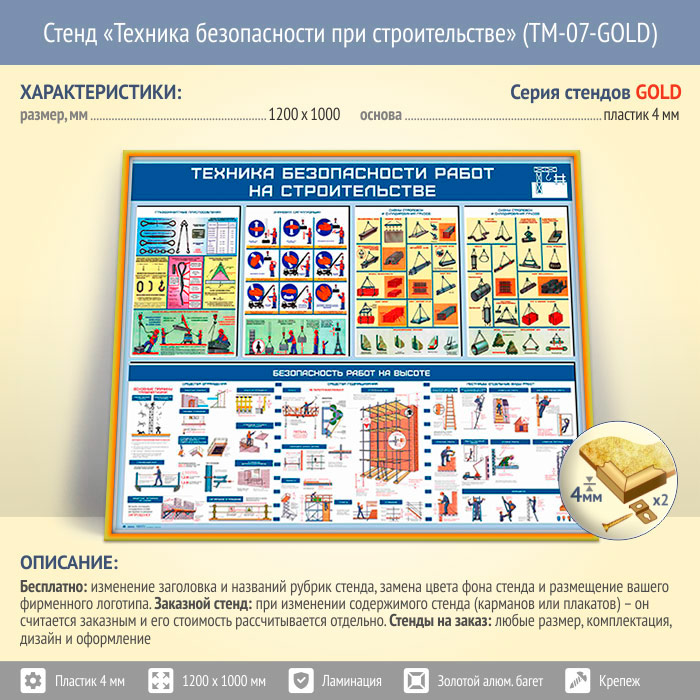 Стенд «Техника безопасности при строительстве» (TM-07-GOLD) в Альметьевске купить