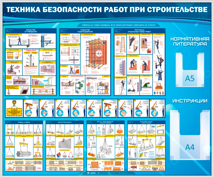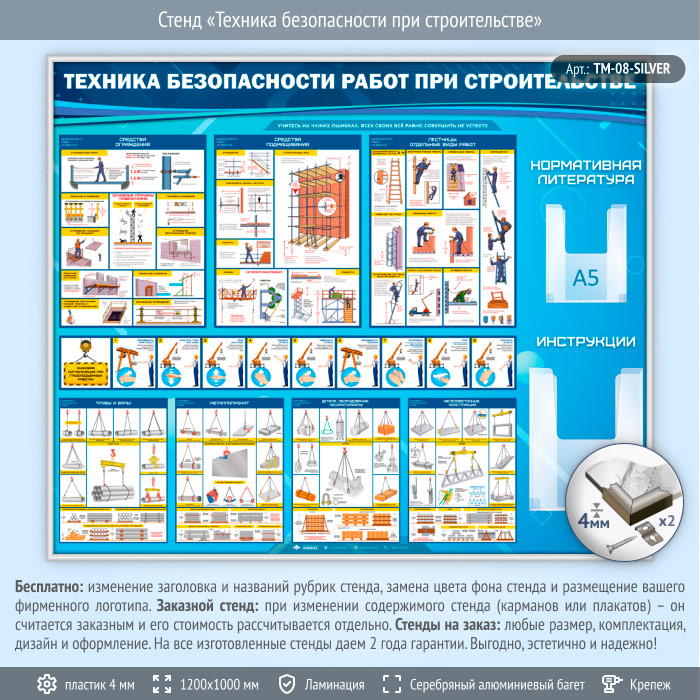 Стенд «Техника безопасности при строительстве» с 2 объемными карманами (TM-08-SILVER) в Альметьевске купить