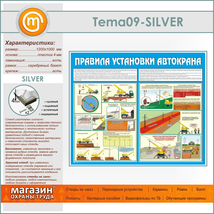 Стенд «Правила установки автокранов» (TM-09-SILVER) в Альметьевске купить