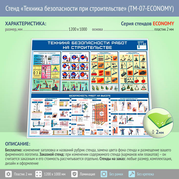 Стенд «Техника безопасности при строительстве» (TM-07-ECONOMY) в Альметьевске купить