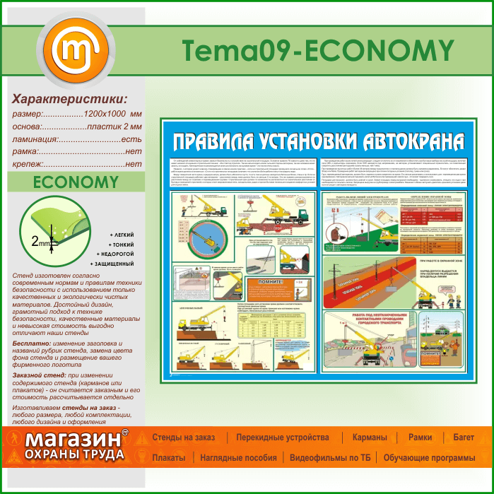 Стенд «Правила установки автокранов» (TM-09-ECONOMY) в Альметьевске купить