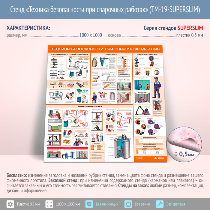 Стенд «Техника безопасности при сварочных работах» (TM-19-SUPERSLIM) в Альметьевске купить