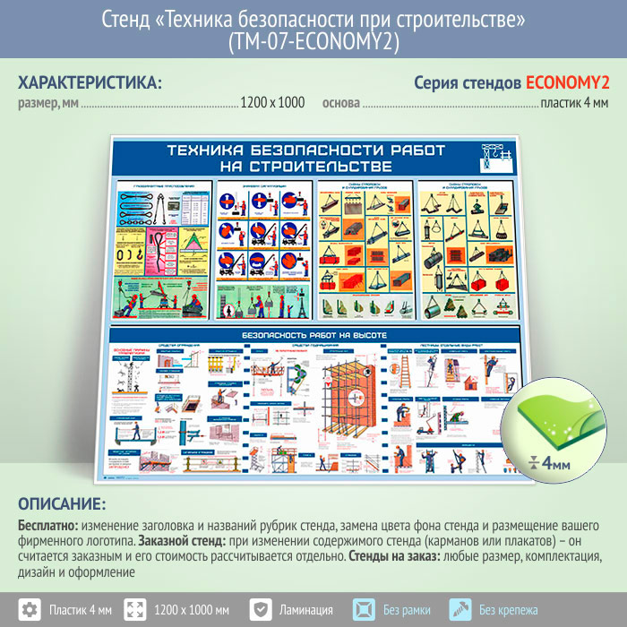 Стенд «Техника безопасности при строительстве» (TM-07-ECONOMY2) в Альметьевске купить