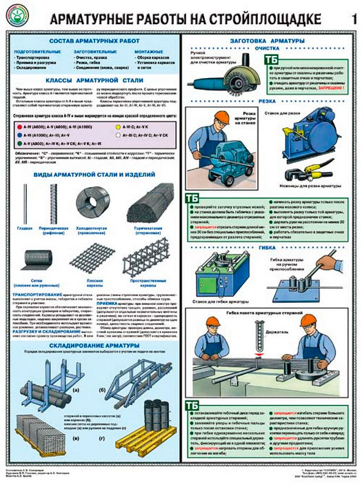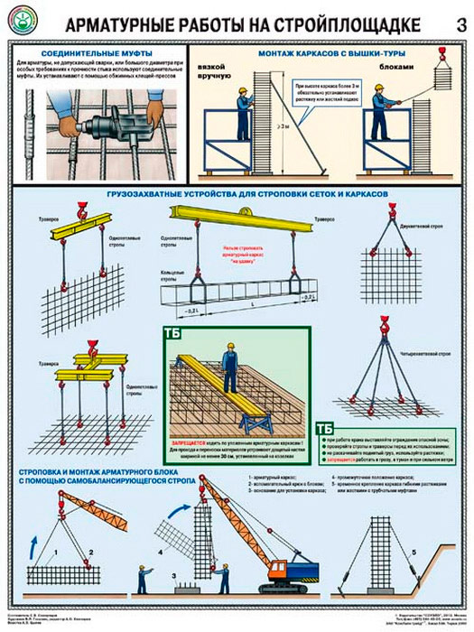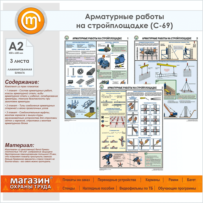 Плакаты «Арматурные работы на стройплощадке» (С-69, ламинированная бумага, А2, 3 листа) в Альметьевске купить