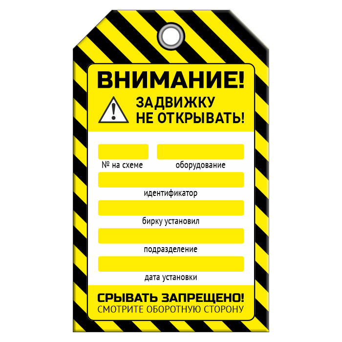 Бирка «ЗАДВИЖКУ НЕ ОТКРЫВАТЬ!» (1 шт., двусторонняя, пластик, 70х115 мм) в Альметьевске купить