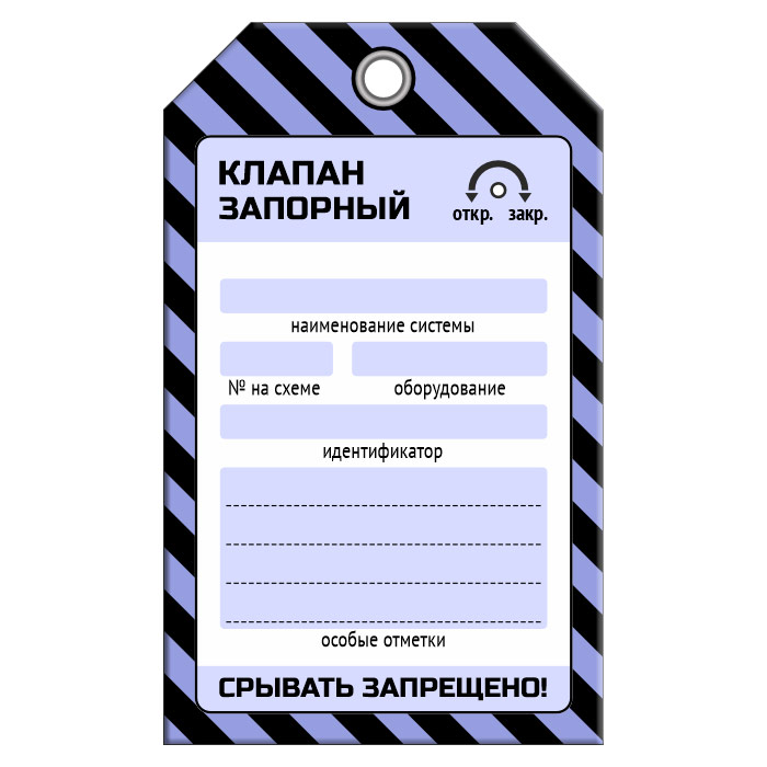 Бирка «КЛАПАН ЗАПОРНЫЙ» (1 шт., односторонняя, пластик, 70х115 мм) в Альметьевске купить