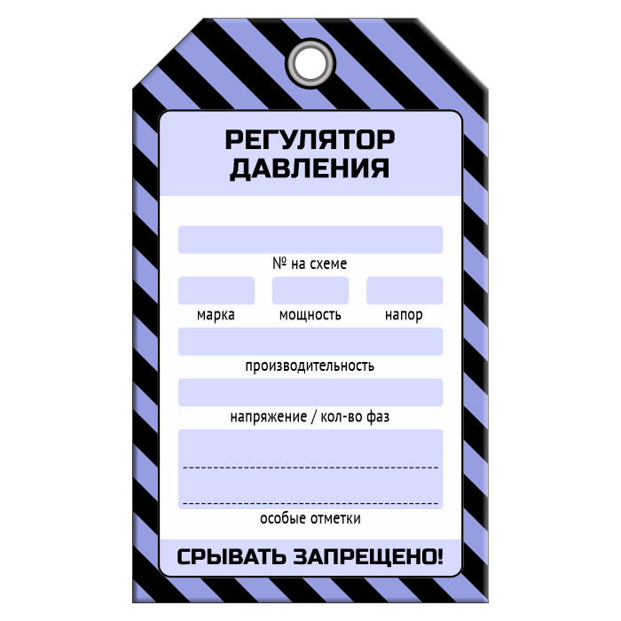Бирка «РЕГУЛЯТОР ДАВЛЕНИЯ» (1 шт., односторонняя, пластик, 70х115 мм) в Альметьевске купить
