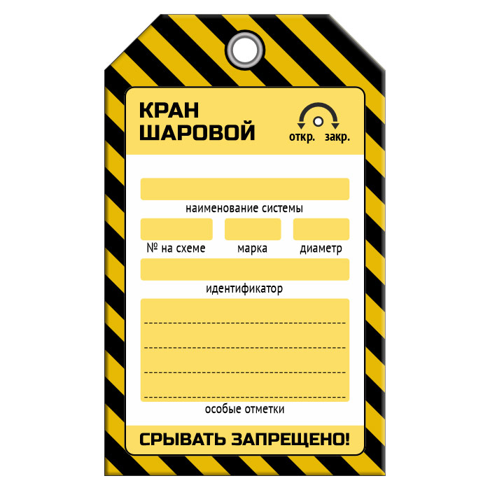 Бирка «КРАН ШАРОВОЙ» для газопровода (1 шт., односторонняя, пластик, 70х115 мм) в Альметьевске купить