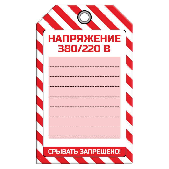 Бирка «НАПРЯЖЕНИЕ 380/220 В» (1 шт., односторонняя, пластик, 70х115 мм) в Альметьевске купить