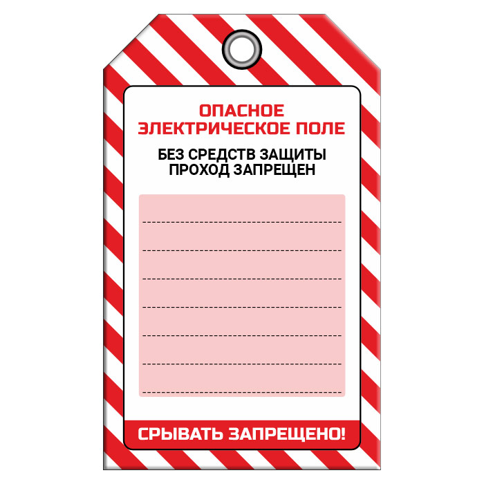 Бирка «ОПАСНОЕ ЭЛЕКТРИЧЕСКОЕ ПОЛЕ» (1 шт., односторонняя, пластик, 70х115 мм) в Альметьевске купить