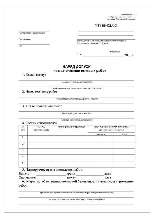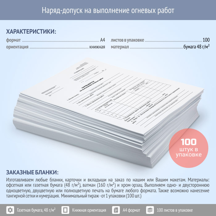 Наряд-допуск на выполнение огневых работ (упаковка из 100 штук) в Альметьевске купить