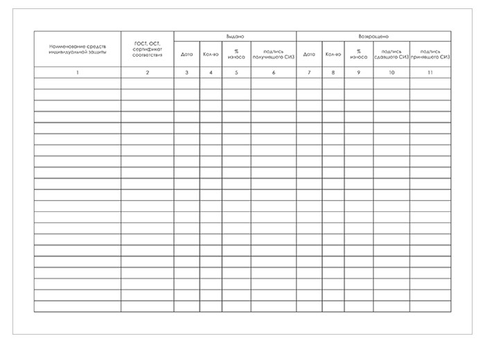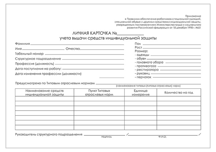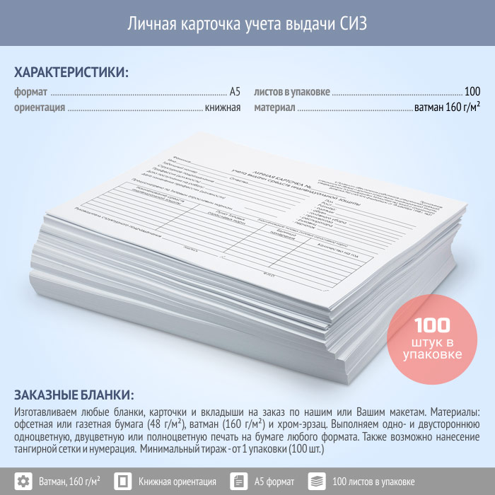 Карточка выдачи СИЗ (приказ Минздравсоцразвития от 01.06.2009 г. №290н, упаковка 100 штук) в Альметьевске купить