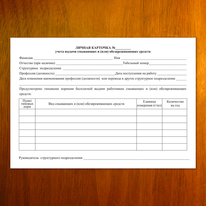 Личная карточка учёта выдачи смывающих и (или) обезвреживающих средств (упаковка из 100 штук) в Альметьевске купить