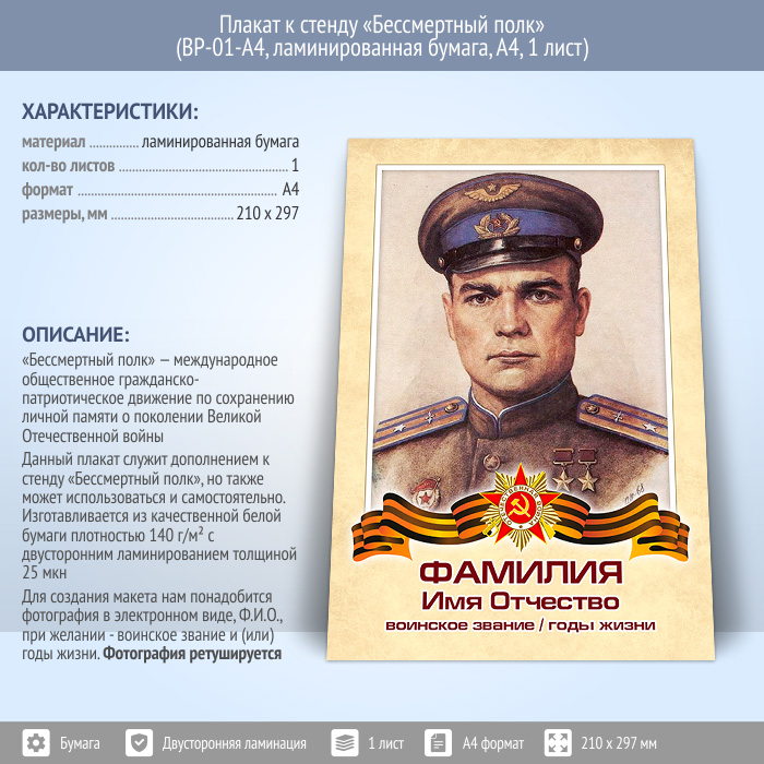Плакат к стенду «Бессмертный полк» + ретушь фото (BP-01-A4, ламинированная бумага, А4, 1 лист) в Альметьевске купить