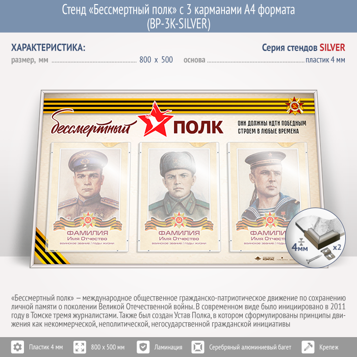 Стенд «Бессмертный полк» с 3 карманами А4 формата (BP-3K-SILVER) в Альметьевске купить