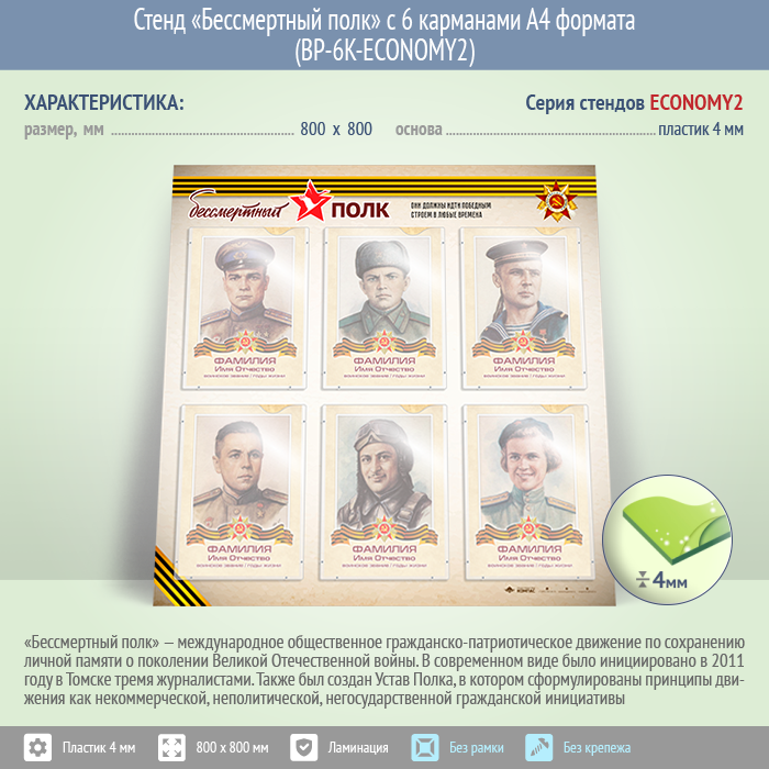 Стенд «Бессмертный полк» с 6 карманами А4 формата (BP-6K-ECONOMY2) в Альметьевске купить