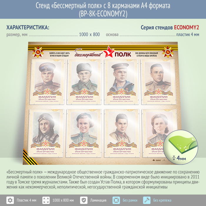 Стенд «Бессмертный полк» с 8 карманами А4 формата (BP-8K-ECONOMY2) в Альметьевске купить