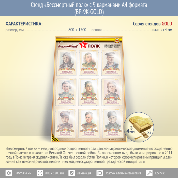 Стенд «Бессмертный полк» с 9 карманами А4 формата (BP-9K-GOLD) в Альметьевске купить