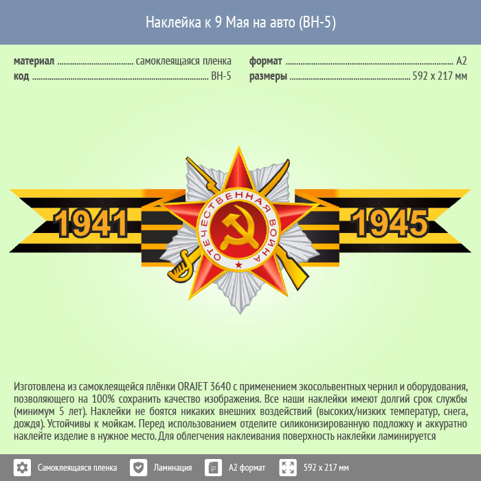 Наклейка к 9 Мая на авто А2 формата (BH-5) в Альметьевске купить