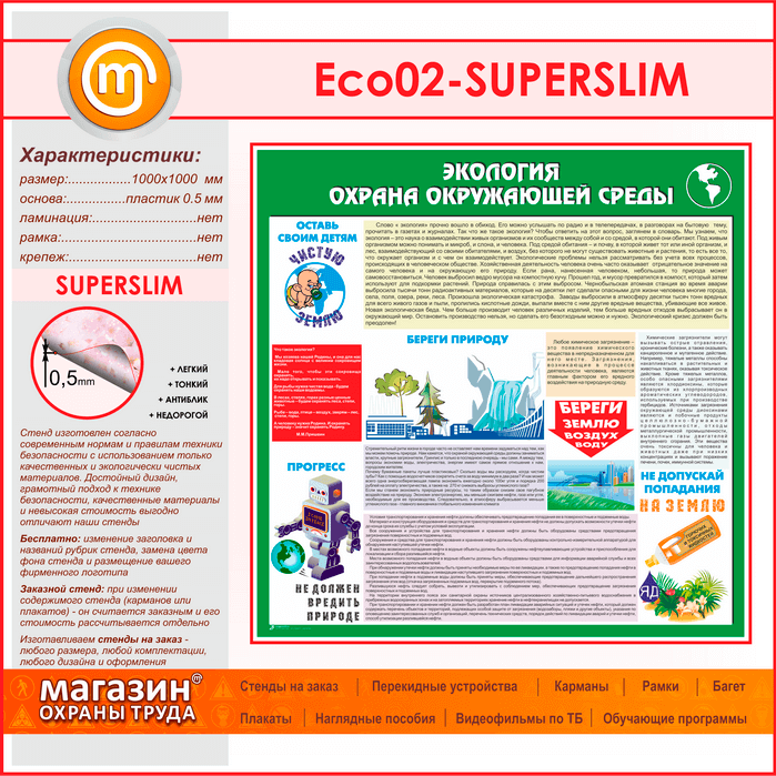 Стенд «Экология - Охрана окружающей среды» (ECO-02-SUPERSLIM) в Альметьевске купить