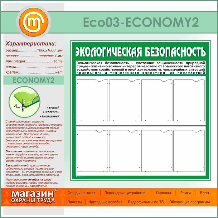 Стенд «Экологическая безопасность» с 8 карманами (ECO-03-ECONOMY2) в Альметьевске купить