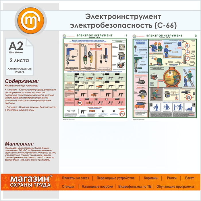 Плакаты «Электроинструмент - электробезопасность» (С-66, ламинированная бумага, А2, 2 листа) в Альметьевске купить