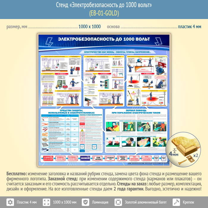 Стенд «Электробезопасность до 1000 вольт» (EB-01-GOLD) в Альметьевске купить